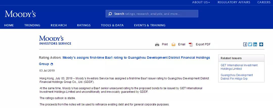近日,国际两大知名评级机构穆迪、惠誉分别给予广州开发区金融控股集团有限公司(简称“开发区金控”)主体和外币债项 “Baa1”及“BBB+”评级,评级展望均为稳定,标志着公司综合实力获得国际资本市场的高度肯定。此次收获这两项评级不仅扩大了公司及广州开发区在全球资本市场的显示度和影响力,同时也在全国创下了多个记录。