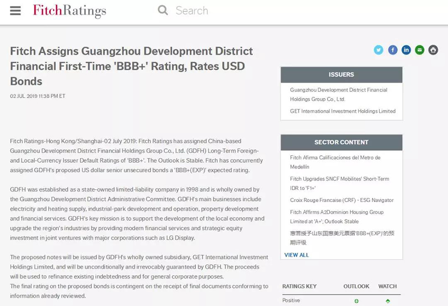 两大国际权威评级机构均认为,开发区金控主业突出、资产质量高、有良好的经营现金流和不断增长的投资组合、偿债能力强,且具有完备的风控体系,是广州开发区最大的园区开发运营主体,并为区域培育集成电路、高端显示、生物医药、人工智能等战略性新兴产业作出积极贡献,对地方经济发展具有重要战略意义。